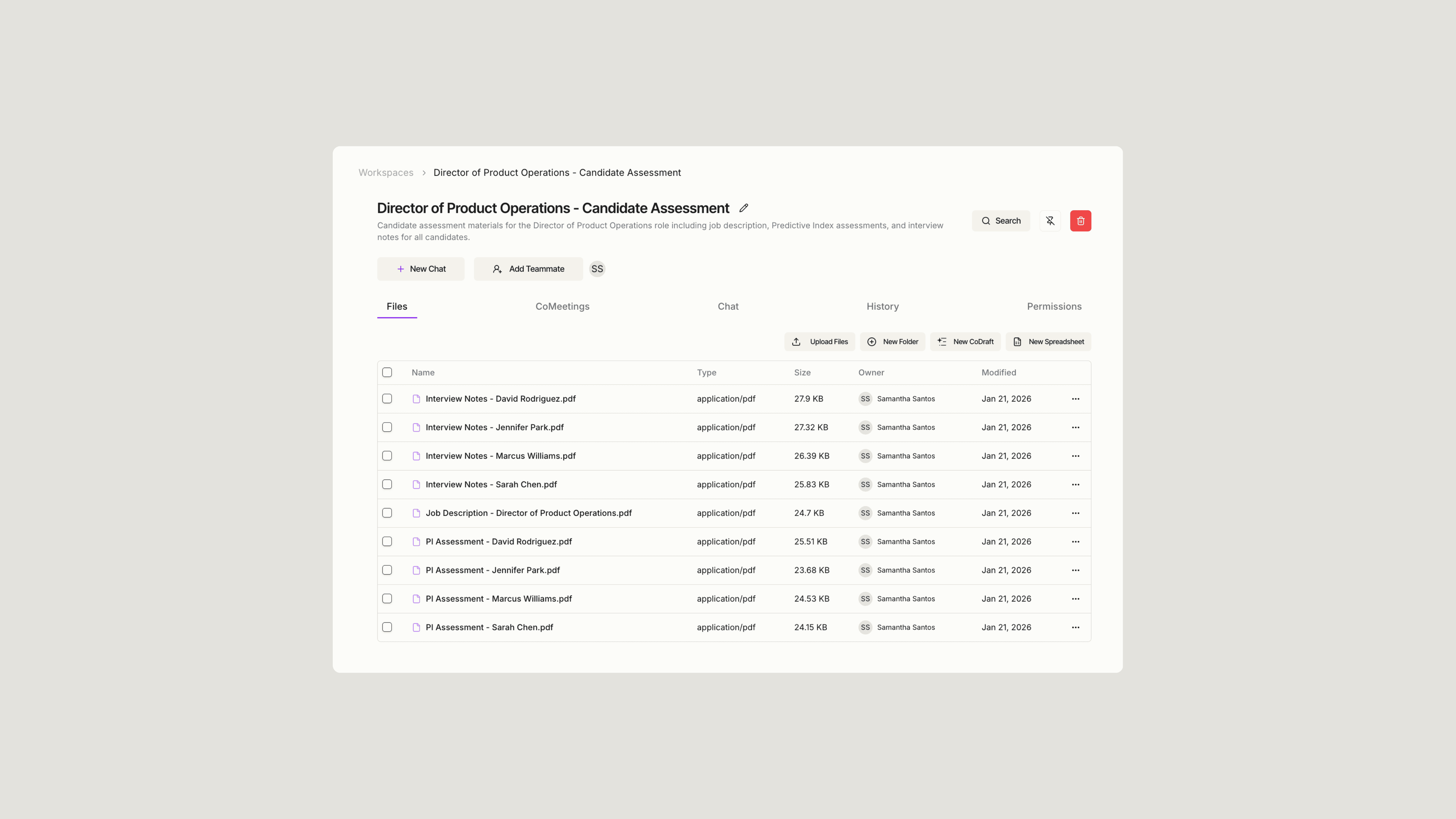 Sofie enables you to extract, organize, and analyze candidate information in minutes. Upload your interview notes, Predictive Index assessments, and job requirements to a workspace and let Sofie build a comprehensive view of each candidate. Easily compare qualifications, surface key insights from interviews, and identify how well each person aligns with the role. With Sofie, you can find the right candidate with confidence, faster.