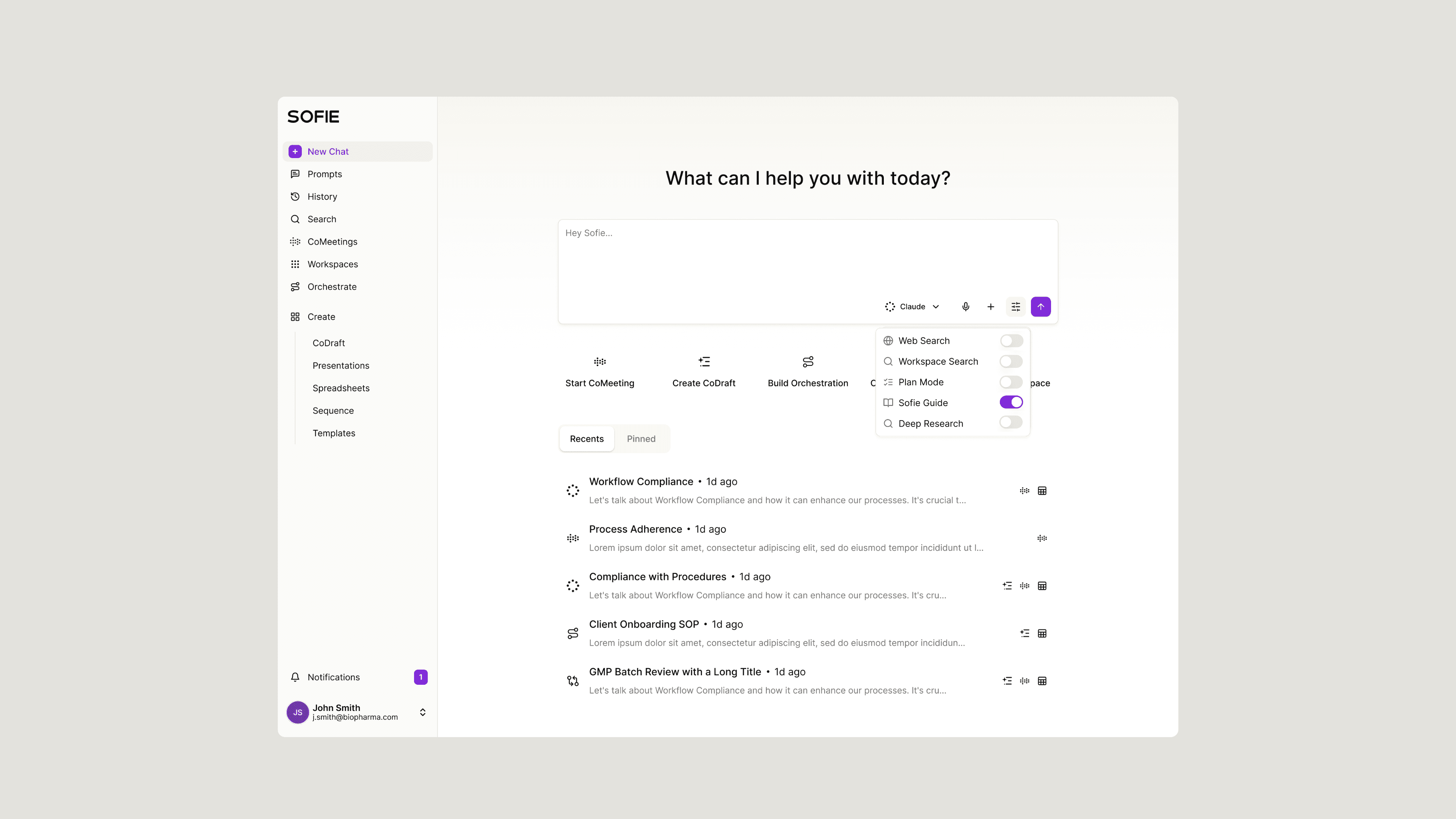 Biopharma technical work demands focus. This release redesigns Sofie's interface to protect it — fewer steps between you and the work that matters, with everything organized around how your day actually moves.