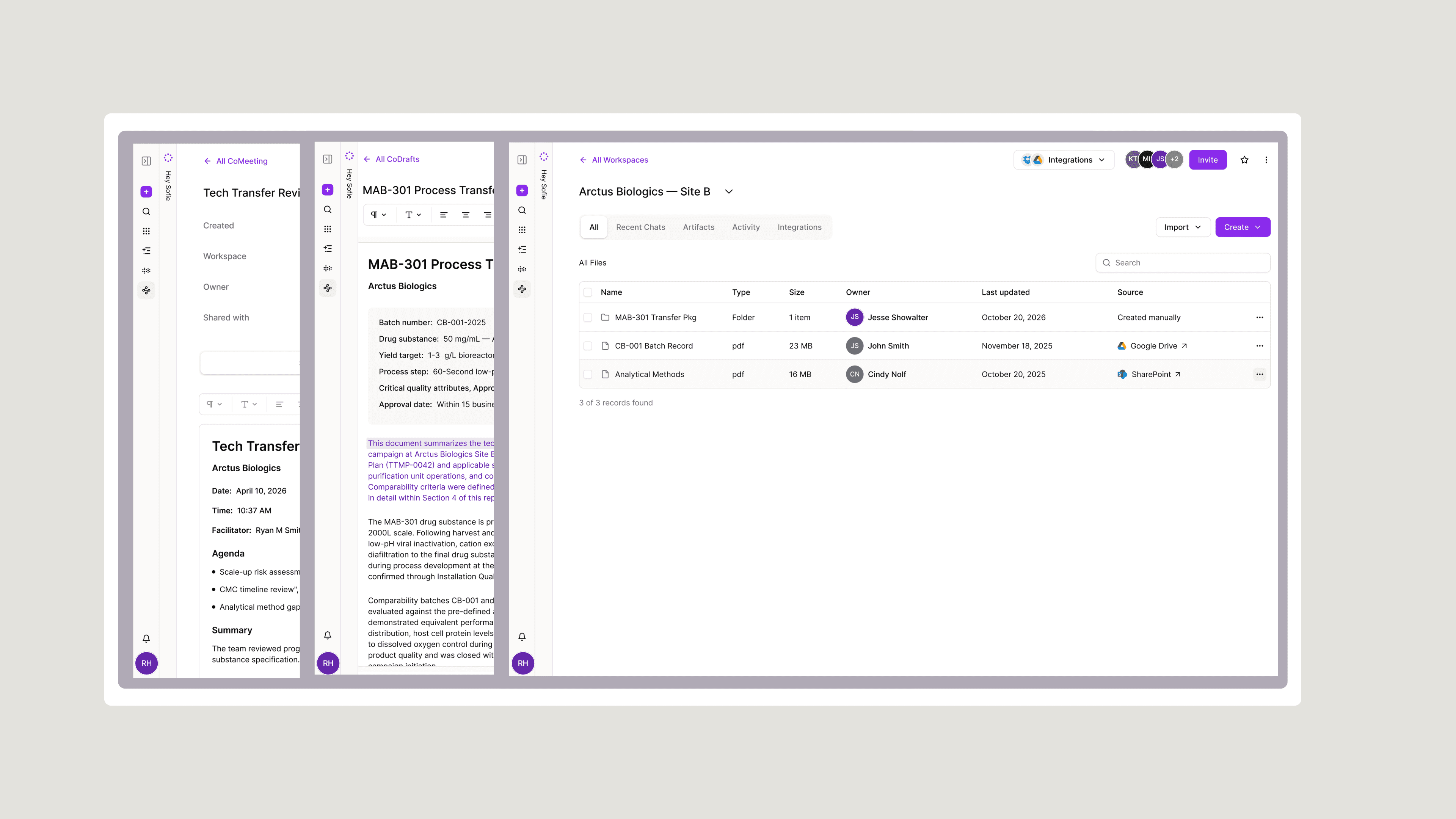 We know integrations are an integral part of how you work, Sharepoint, Veeva, Outlook–it all needs to be accessible. We’ve made it easier to see your files in workspaces, add context and documents in chat, and pull content into CoDraft all within Sofie. Everything stays connected in the background so you can stay focused on the work.